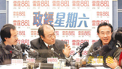 左起:張超雄、馮檢基及田北俊接受商台訪問。 (李志樑 攝)