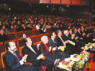 【本報訊】葡萄牙共和國總統若熱.桑帕約於1月13日在中國傳媒大學向師生發表講話後,出席卡蒙斯學會、東方葡萄牙學會與中國傳媒大學之合作協議簽署儀式。協議內容是於中國傳媒大學內成立一個葡萄牙語言中心,目的在於推廣葡萄牙語言及文化。葡國總統表示:今次國事訪華行程適值葡萄牙語言中心在中國傳媒大學成立,感到十分高興。該中心由何鴻燊博士出資贊助成立。葡國外交部安東尼奧.蒙特羅部長在儀式後,對何博士的支持,表示感謝。