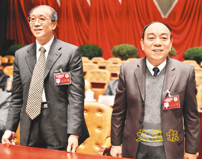 福建省政協九屆三次會議選舉福建省委副書記黃瑞霖(右)和香港中聯辦原副主任鄒哲開為福建省政協副主席。(中新社)