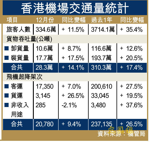 港機場客貨量皆創新高