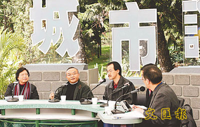 劉兆佳(左二)指扶貧委員會不會成為爭拗平台。(葉傲冬 攝)