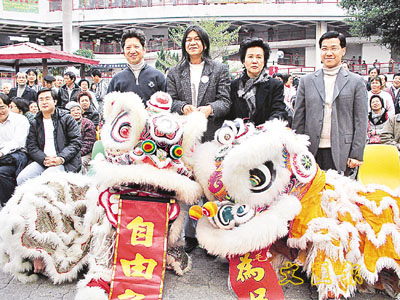 「長毛」的將軍澳辦事處昨日開幕,其排場和他較早前的大埔辦事處開幕可謂截然不同:「長毛」聘請了醒獅隊到場助興,打鑼打鼓,一行人走了兩條街到辦事處門外,就似「出巡遊街」。