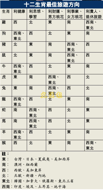 十二生肖最佳旅遊方向 (圖)