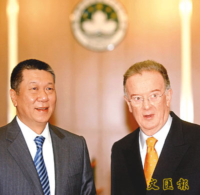 【本報訊】葡萄牙總統桑帕約昨日由上海轉達澳門,展開澳門回歸後首次訪問。他於昨天晚上會見澳門行政長官何厚鏵(見圖)時,肯定澳門回歸5年來,取得明顯成功,他又指,澳門成功落實「一國兩制」、「澳人治澳」及高度自治,各方面均取得進步,令社會發展穩定繁榮。他又期望澳門可為內地與葡語系國家的企業合作,發揮橋樑角色。