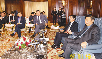 浙江省委書記習近平與香港部分傳媒社長和總編輯座談。 (劉國權攝)
