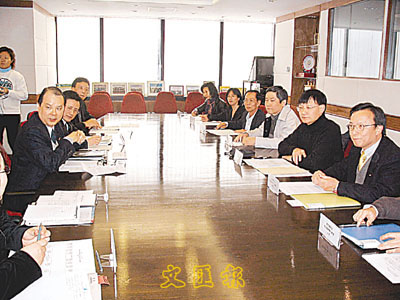 工聯會立法會議員王國興和工會代表會晤張建宗秘書長商討外判後的工人工資等問題。
