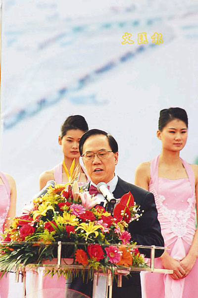 政務司司長曾蔭權在開通儀式上致辭。 (本報深圳傳真)