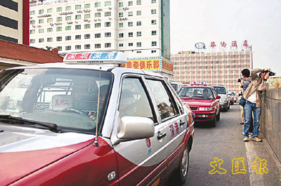 昨天中午,在羅湖口岸交通樓前每隔幾秒就有的士經過。 (本報深圳傳真)