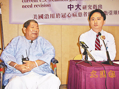 患心臟病的禤伯伯(左),因服用Plavix而引致胃出血復發;陳家亮教授(右)籲美國更改指引。 (甄健輝 攝)