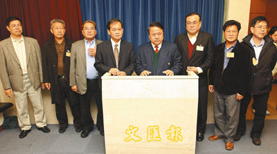 漁民團體聯會昨日與李少光會面後見記者。 (李志樑 攝)