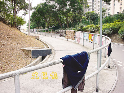 行人道欄桿經常掛滿衣物,影響市容礙觀瞻。