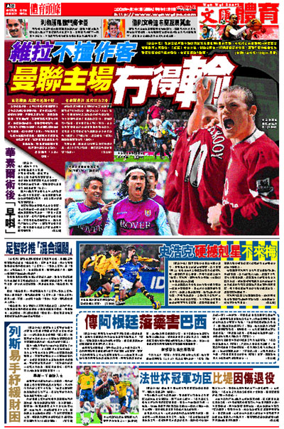 往績方面,維拉近10仗與曼聯交手均不勝,近3季只得2和5負,相信是役作客亦難望「偷雞」。(梁志達)