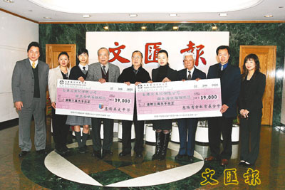 惠僑英文中學和惠陽商會教育基金會,昨日舉行支票遞交儀式,透過本報的「南亞海嘯海難賑災基金」賑濟災民。 (趙焜崗 攝)
