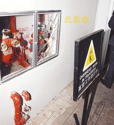 銅鑼灣禮頓中心被刑事毀壞的消防喉玻璃。