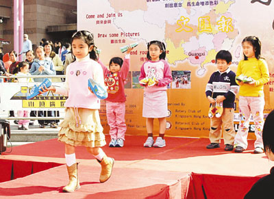 【本報訊】(記者 聶曉輝)為了提升內地山區小孩的生活質素,以「踏」出他們的人生路,港京扶輪青年團與扶輪社合辦了一個名為「創出意念——為生命增添色彩」的活動,把逾千對「小鞋子」交給全港7間中小學的學生,用他們的意念為一雙雪白的布鞋染上色彩,然後再運到廣西送給當地的山區小孩。