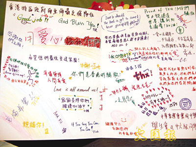 中華聖潔會靈風中學學生會及全校同學共800多人,特別自製了兩本紀念冊子,刊載了同學寫給被派往南亞海嘯災區的支援隊伍人員的打氣和慰問的話。日前紀念冊已送抵保安局,保安局發言人表示,同學們別具心思的製作將會輪流於各部門擺放,以供支援隊人員細心欣賞。