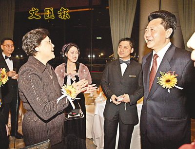 范徐麗泰與李剛昨日出席國際青年商會香港聯會就職典禮。 (劉國權 攝)