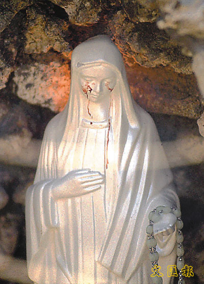 聖母像流出血的眼淚,一直教人摸不著頭腦。 (美聯社)