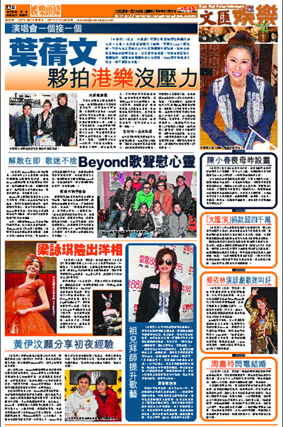 【本報訊】(記者 李思穎)葉蒨文與香港管弦樂團將於三月十七至十九日假紅館舉行「港樂.葉蒨文Live」演唱會,昨日特地在香港文化中心音樂廳舉行招待會,出席者包括音樂會的指揮石信之,以及顧問趙增熹。現場有切蛋糕吹蠟燭儀式,期間有枝蠟燭突然火光猛烈,Sally連忙俯低身吹熄之,卻不慎春光乍洩。