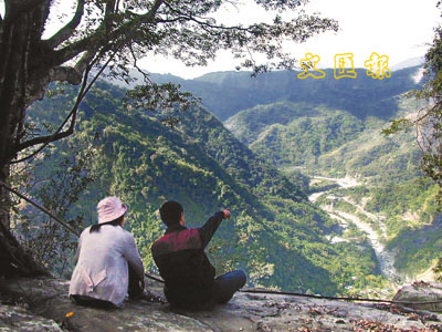 嘉義縣阿里山鄉里佳村新開發的「大石板」風景點,可以眺望山美村達娜伊谷,令人流連忘返。 (中央社)