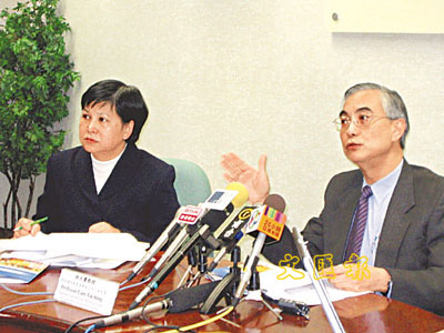 癌病事務統籌委員會主席林大慶(右)與監察及流行病學處主任謝麗賢出席記者會。 (朱樂汶 攝)