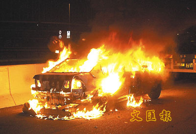 長沙灣的縱火燒車案,發生在荔枝角道近東京街,昨凌晨2時許,一名貨車司機在其中型貨車內睡覺時被附近爆炸聲響驚醒,見一輛私家車著火,連忙報警;消防員到場時,全車已被烈焰吞噬,經開喉灌救才將火救熄。