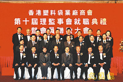 香港塑料袋業廠商會新一屆理監事就職賓主合照。