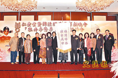 錦陞輝劇團多位成員與仁愛堂第25屆董事局成員於慈善晚會上合照。