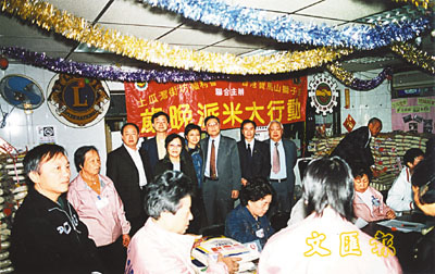 土瓜灣坊會與寶馬山獅子會首腦主持敬老派米活動。