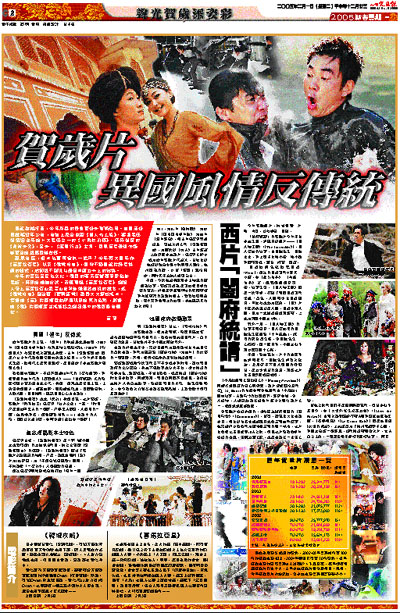 近年賀歲片的主題,「過年」的味道越來越淡薄。2002年《嚦咕嚦咕新年財》有麻雀檯上恩怨情仇,2003年《行運超人》有蘇民峰大談風水命理,去年《鬼馬狂想曲》則是六七十年代香港銀幕經典角色大檢閱……今年卻不見港式象徵,取而代之是異國風情。是否預示了本地賀歲片轉型之勢?