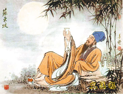 世人說東坡嗜酒,他亦自言:「夜飲東坡醒復醉,歸來彷彿三更」,而且在他的詩詞中,亦多酒蹤,如:「故國神遊,多情應笑我,早生華髮。人間如夢,一樽還酹(音賴)江月。」;又如:「酒賤常愁客少,月明多被雲妨。中秋誰與共孤光?把盞淒然北望。」史家分析東坡雖嗜酒,但他受莊子及陶潛影響甚深,絕非因一時失意,便就沉溺於酒色而不能自拔的人。
