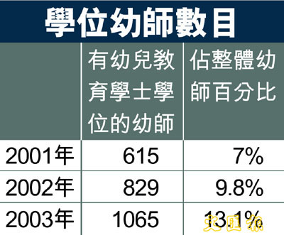 【本報訊】(記者 黃錦佳、盧燕娥)當局於2005/06年度向在職幼師提供的幼兒教育證書課程資助學額將增加約150個;連同其他自資學額,預計有關課程的學額供應足以在6年內讓所有幼師達到證書或以上程度資歷。