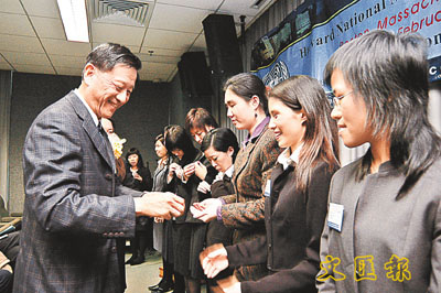 浸會大學17名學生將在2月中出發往波士頓哈佛大學,參與「2005哈佛模擬聯合國會議」,與來自全球135間大學的逾2000名學生,模擬展開聯合國大會及各委員會,討論政治、法律、國際安全、文化及人道主義等議題。浸大學生經大會安排,將模擬芬蘭的與會代表,以芬蘭的角度與各地學生交流。浸大校長吳清輝表示,今次活動可助學生討論國際議題擴闊視野,藉此了解世界各地的民族文化。吳清輝及芬蘭駐港總領事Pauli Makela昨日主持委任禮,Pauli Makela更與學生分享芬蘭的發展情況。