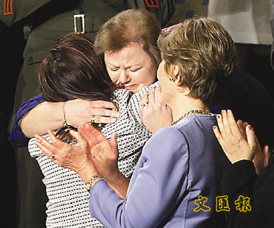 美國總統布什周三發表國情咨文演說時,刻意在現場營造賺人眼淚的感人氣氛,讓兩名親人在伊拉克死亡的婦女當眾擁抱哭成淚人。