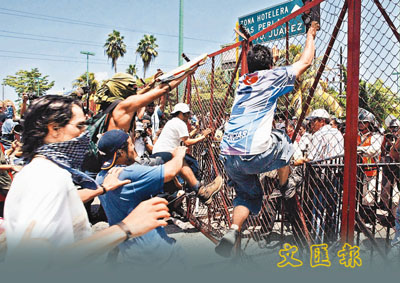 在墨西哥的世貿會議場外,聚集了不少反對世貿示威者。