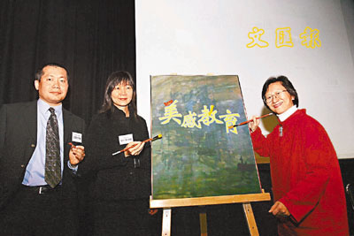 活力星贊助「法國印象派畫展」夥伴學校計劃的得獎學生前往法國參觀知名博物館。圖為茹國烈(左)、長實趙少琴(中)主持計劃開幕儀式。