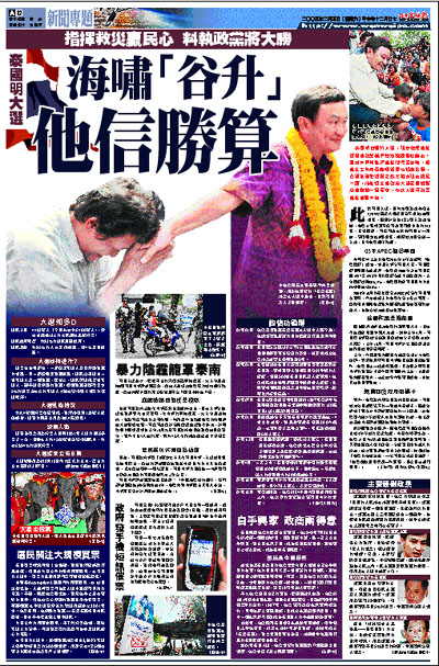 泰國明日舉行大選,現任總理他信領導的政黨幾乎肯定能壓倒性勝出。雖然外界常批評他信傲慢及專制,但他在去年南亞海嘯後即時視察災場,凸顯其強勢領導之餘又能表現出親民一面,將其過去的政治失誤及獨裁管治的指控一掃而空,今次大選可說是他信的囊中物。
