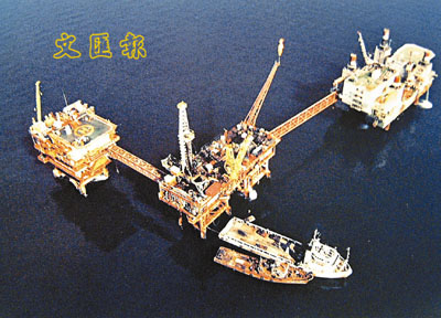 中國海上石油公司與國外石油企業合作開採項目發展順利。圖為中海油海上採油設施。
