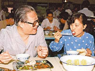 江澤民表示,他不敢說這些年他取得了多大的成績,他只能說他在腳踏實地地為黨工作。圖為他視察北京第一機床廠時與工人共進午餐。
