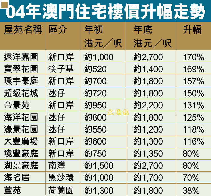 中原料澳門樓價今年漲50% (圖)