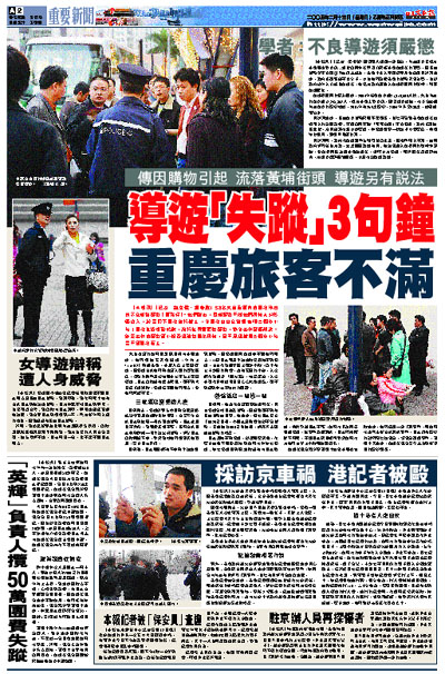 [2005-02-13] 導遊「失蹤」3句鐘 重慶旅客不滿 放大圖片
