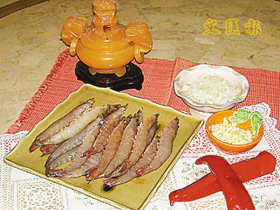 2、b兩條,切粒;蒜肉,四粒拍碎;