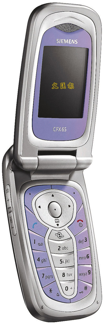 精靈多變的猴仔,配西門子CFX65手機最適合不過。體積細小,重量更只有88克,內置MMS、EMS、Email、內置VGA變焦相機,更配備LED防紅眼閃燈。外殼會隨著燈光轉變而變色,外置的環型天線與優質機殼配合得渾然天成、亮麗的外觀與清晰流暢的線條,更顯得優雅端莊,令人愛不釋手。通話及備用時間長達200分鐘及200小時。