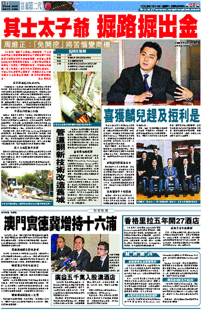 身為上市公司其士國際(025)主席周亦卿的公子,亦是富豪第二代的周維正,30歲出頭已成為執行董事,接受訪問當天,仍帶點孩子氣的奧斯卡(周維正洋名Oscar),不但沒有太子爺架子,且對所負責的管道翻新業務知識相當熟悉,有問必答,信心十足,大有青出於藍的年輕人本色。