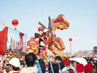 「魅力西安·快樂曲江——2005年曲江之春文化旅遊藝術周」上,金龍騰飛賀新春。