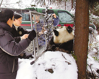 本報駐西南記者顏曉玲成都消息:日前,在海拔1,000餘米四川臥龍中國保護大熊貓研究中心附近山上,一隻國寶大熊貓因凍餓下山向人求救,所幸被人及時發現後,得到了積極的救治。