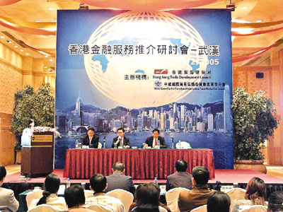 武漢冀香港金融服務業可以引導當地中小企業走向國際市場,圖為香港金融服務推介研討會現場。