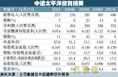 ¡@¤½¥q¥Ø«eªº05¦~¹w´Á¥«¬Õ²v¬°15.1 ¿¡A»P«í¥Í«ü¼Æ15.3¿ªº¥§¡¥«¬Õ²v¤ô¥¤@P¡C¤½¥q05¦~¹w´Á¥§¡²b¸ê²£¦¬¯q²v©M¤w¹B¥Î¸ê¥»¦¬¯q²v¤À§O¦b19%©M12%¡C05¦~¹w´ÁªÑ®§²v¦b3.8%ªº°ª¦ì¡Cºû«ùÀu©ó¤j¥«µû¯Å¤Î¥Ø¼Ð»ù®æ17.68¤¸´ä¹ô¡A05¦~¹w´Á¥«¬Õ²v¬Û·í©ó16.8¿¡A¸û«í¥Í«ü¼Æ05¦~¹w´Á¥«¬Õ²v¥§¡¤ô¥°ª10%¡C¤½¥q04-06 ¦~¶¡ªºPEG¤´¬°0.8 ¿¡C