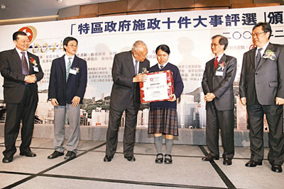 【本報訊】政府施政十件大事昨日揭盅,領匯、紅灣賤賣、沙士調查報告發表……通通上榜,各大傳媒老總均表示,這與他們心目中的十件大事大同小異。紫荊雜誌社社長、總編輯周慶稱,十大施政評選反映市民的想法和願望,為政府了解民意提供一個很好的渠道,希望政府認真參考評選結果。