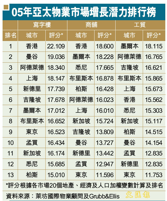 [2005-03-02] 05年亞太物業市場增長潛力排行榜